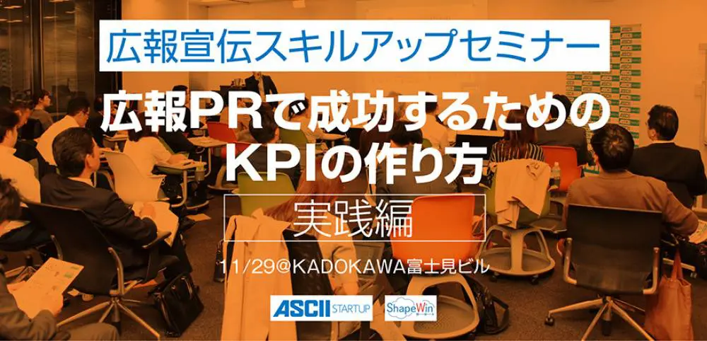 ASCIIとシェイプウィンによる合同企画『広報宣伝スキルアップセミナー』では、ベンチャー企業を対象に「広報PRで成功するためのKPIの作り方~実践編~」を2017年11月29日(水)に開催します。
