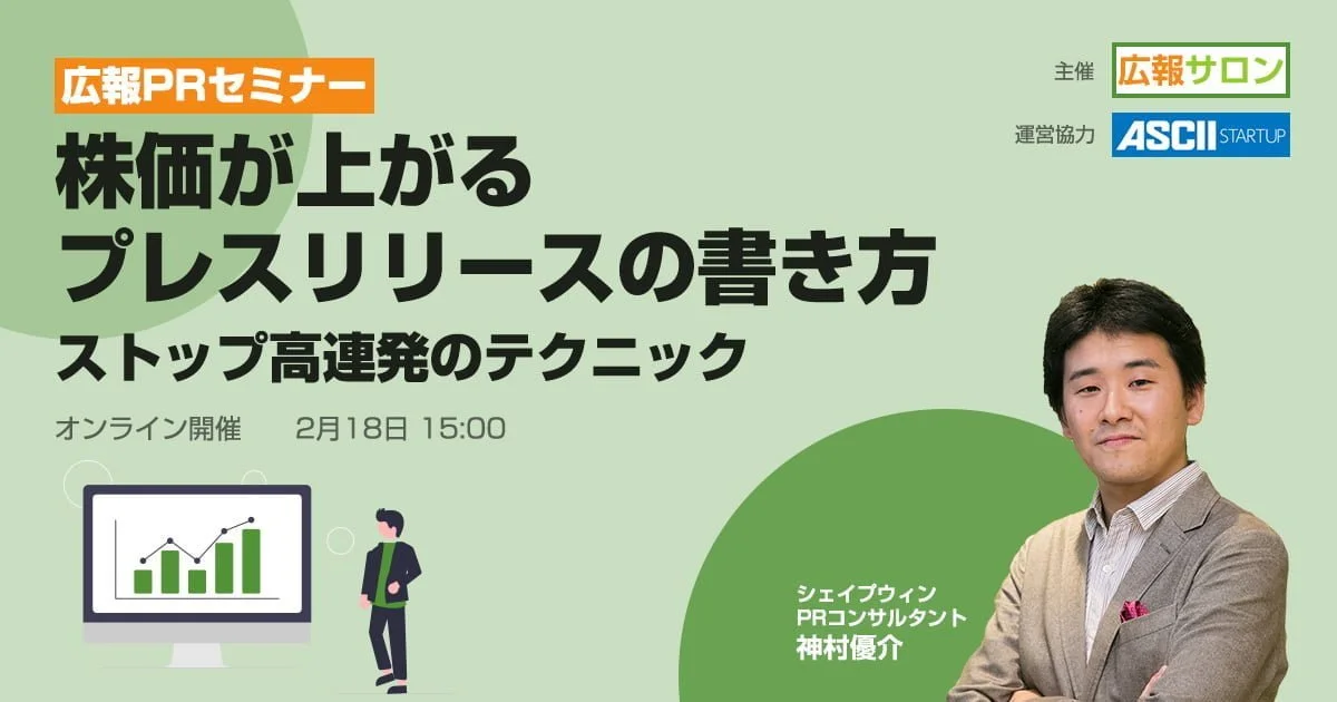これまで上場企業相手に広報の指導や中長期的な株価アップにつながる広報活動を支援してきた、ビジネスメディアに強いシェイプウィンのPRコンサルタント 神村優介が講師を担当します。