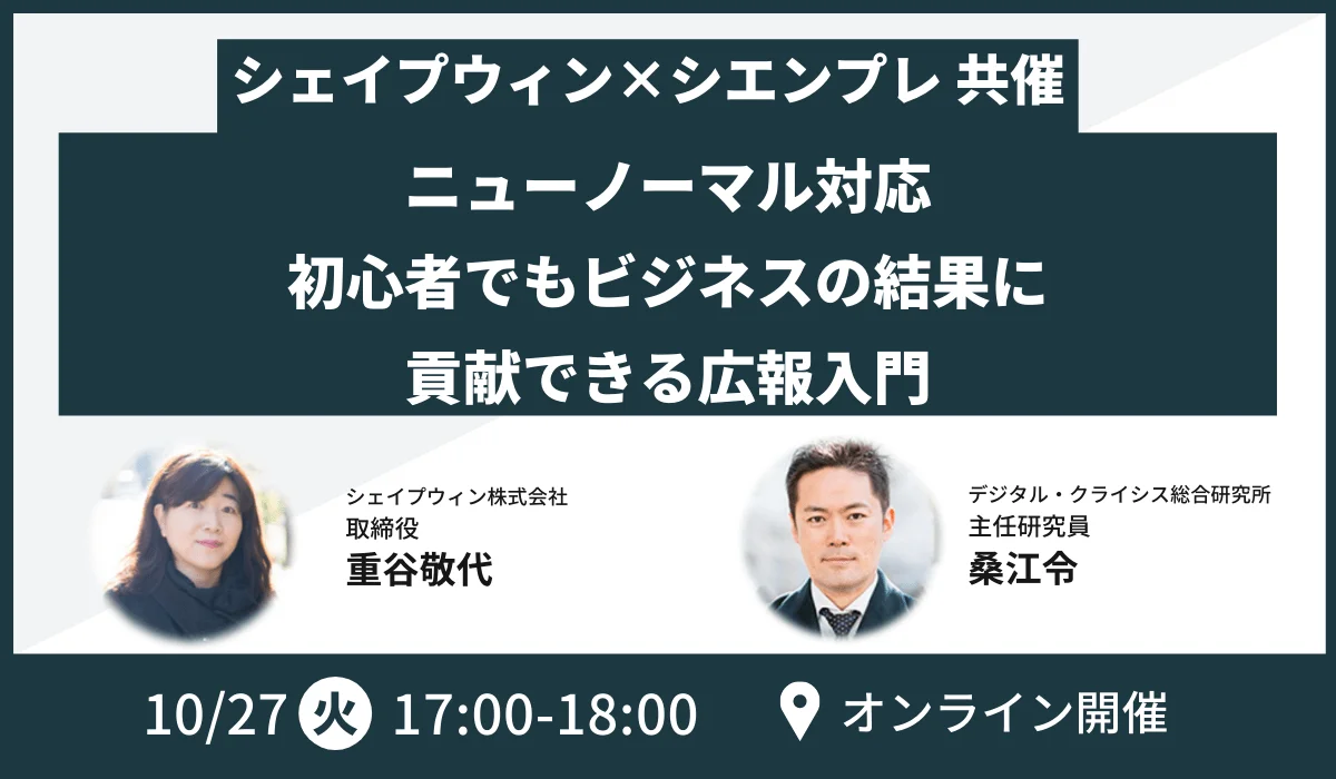 シマムラジュク 広報PR戦略勉強会「無料でできる小さな会社のメディア露出戦略入門 〜テレビやネットで取り上げられる“あの“会社は何をしているのか?〜」10月7日(水)19:30@オンライン開催 ShapeWin 2023年11月17日